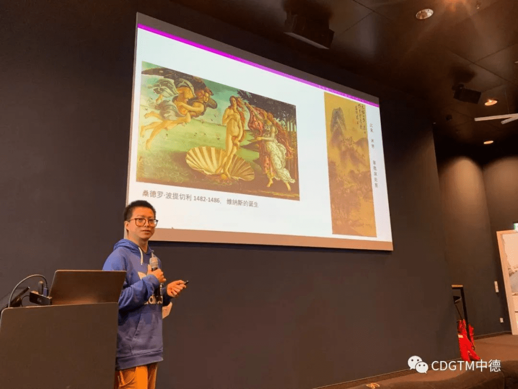 随后秘书长陈粟源对个人留德经历进行了简介并对干事招新和会员招募进行了讲解宣传。陈粟源秘书长从两幅名画 桑德罗波提切利的《 维纳斯的诞生》和北宋米芾的《翠微深处图》入题,指出中西方文化差异,说明留学中扩大视野融会贯通的过程。讲述了个人在基金申请和国际比赛中的经历及scientifyrRESERCH这一基金申请搜索作为顾问的工作经历。最后他对干事招新和会员招募的过程进行了简单的讲解和宣传。